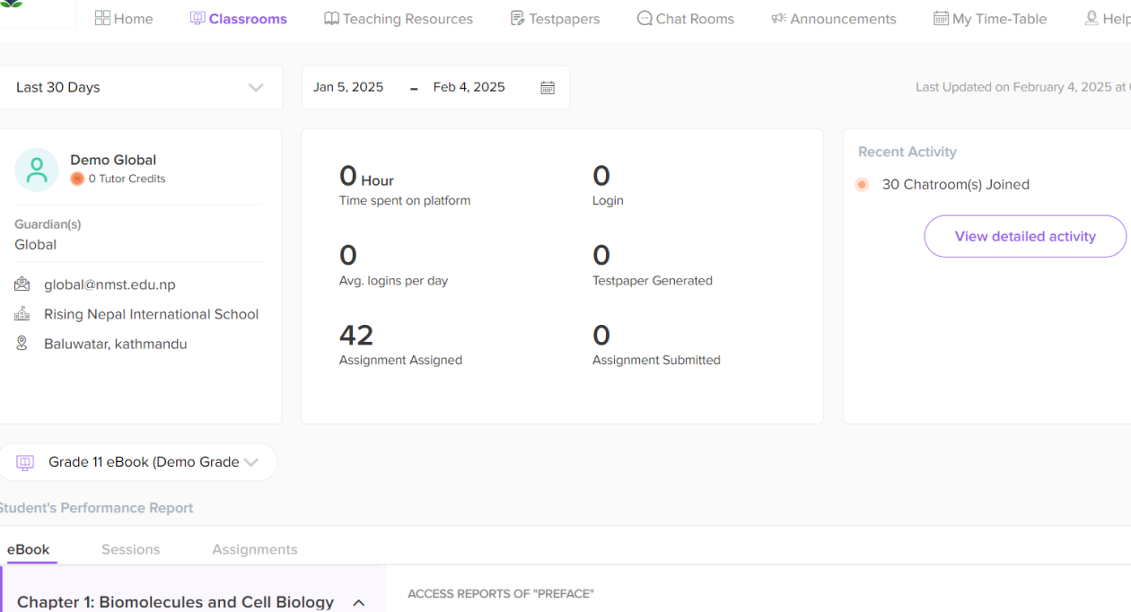 Gain insights into students' performance with detailed classroom and platform activity reports. Track accessed eBooks, watched interactive Videos, and more to review their progress and provide necessary guidance.