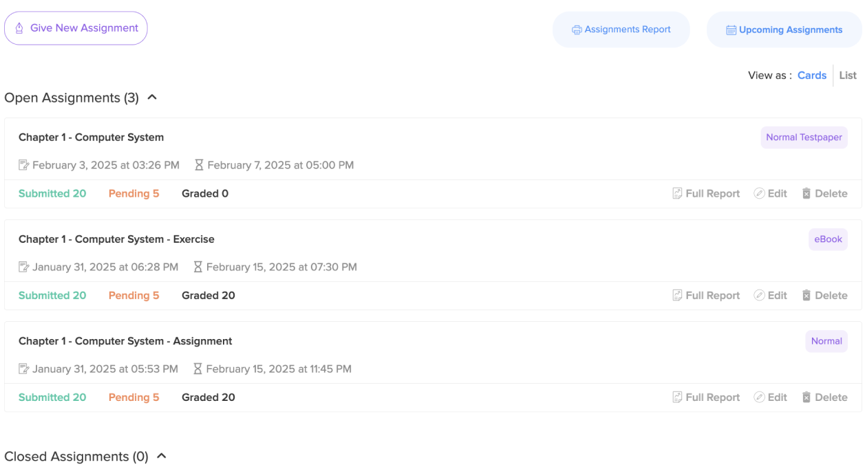Utilise our various types of assignments available such as eBooks, Interactive Videos, and Testpapers to improve your students' understanding. Our platform streamlines assignment management by allowing teachers to view submissions, grade assignments, provide feedback, and publish results- all in one platform.